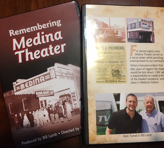 Over the past 18 months Medina City Councilman Bill Lamb worked with Matt Tomek of Medina TV to create the documentary, Remembering Medina Theater.  The DVD is being sold by the Community Design Committee with proceeds from the sale going toward the on-going restoration of Medina’s historic engine house.